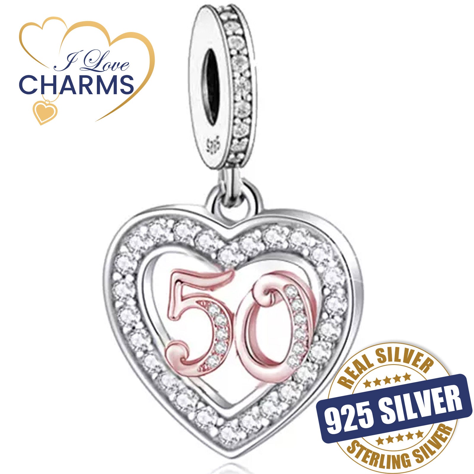 πŸ’ 50th Birthday Charm 925 Sterling Silver Number 50 Heart Love Anniversary Gift
